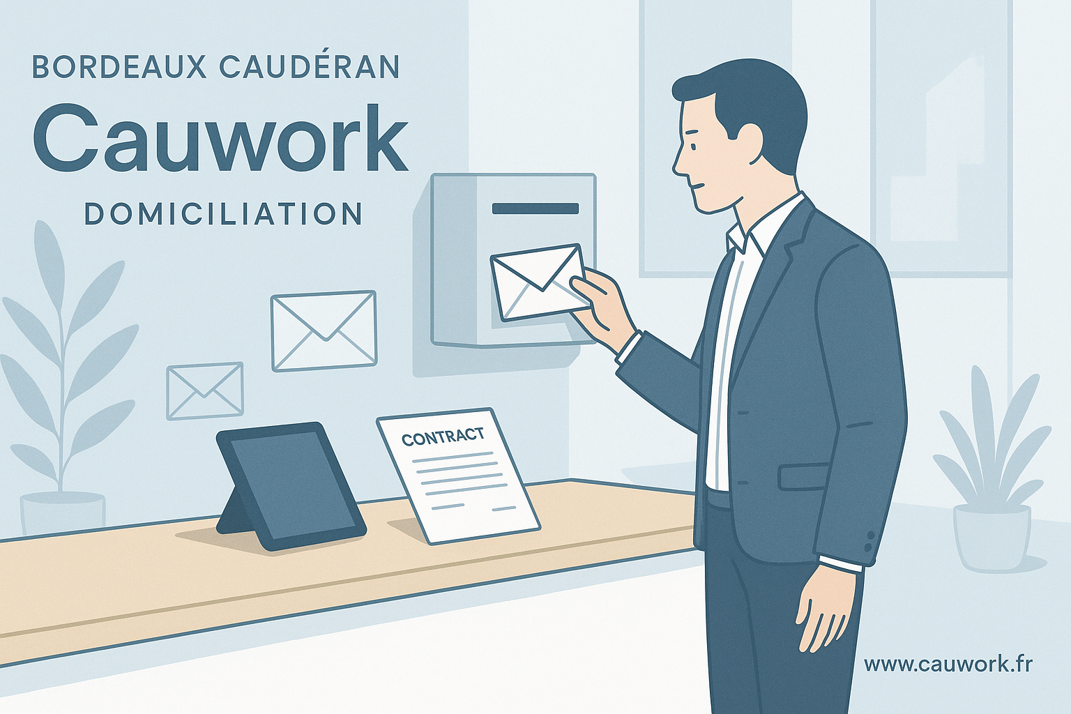 Simulez votre contrat de domiciliation en ligne et recevez votre attestation sous 24h. Découvrez CAUWORK.fr pour faciliter votre domiciliation d’entreprise à Bordeaux Caudéran.